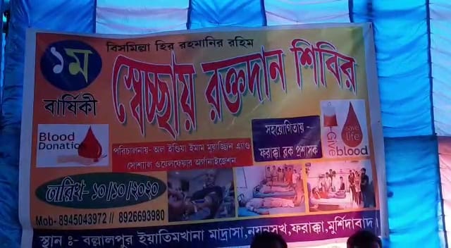 - স্বেচ্ছায় রক্তদান শিবির ফরাক্কায়